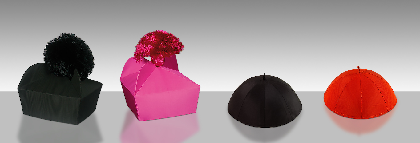 Zucchetto Papale o per Cardinale, realizzato in pregiata seta pura 100% marezzata nei colori bianco o rosso ponceau