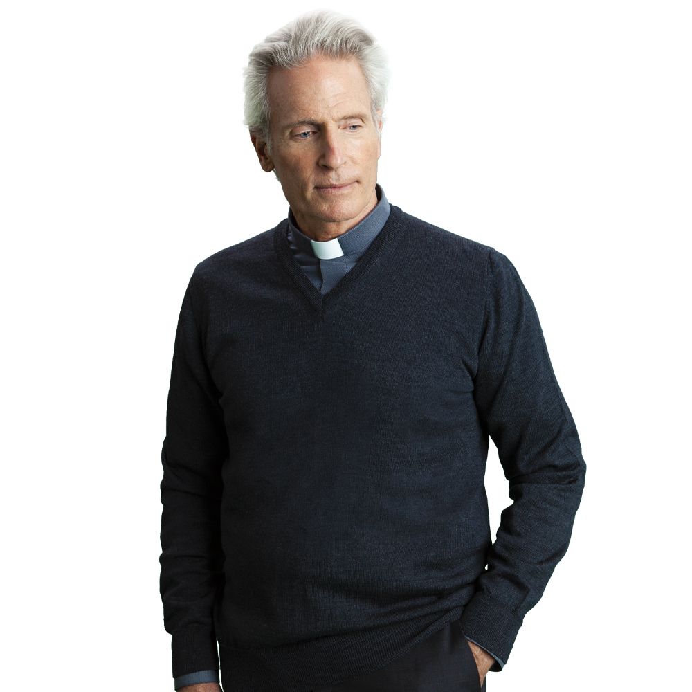 Pullover uomo con collo a V manica lunga realizzato in maglia rasata, in misto lana.